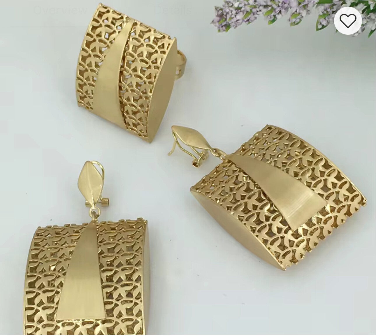 Each piece is beautifully crafted to elevate your look, featuring a polished gold finish with a refined texture that radiates class and charm. Perfect for special occasions, business events, weddings, or elegant evenings out, this set completes any outfit with a touch of luxury and grace.