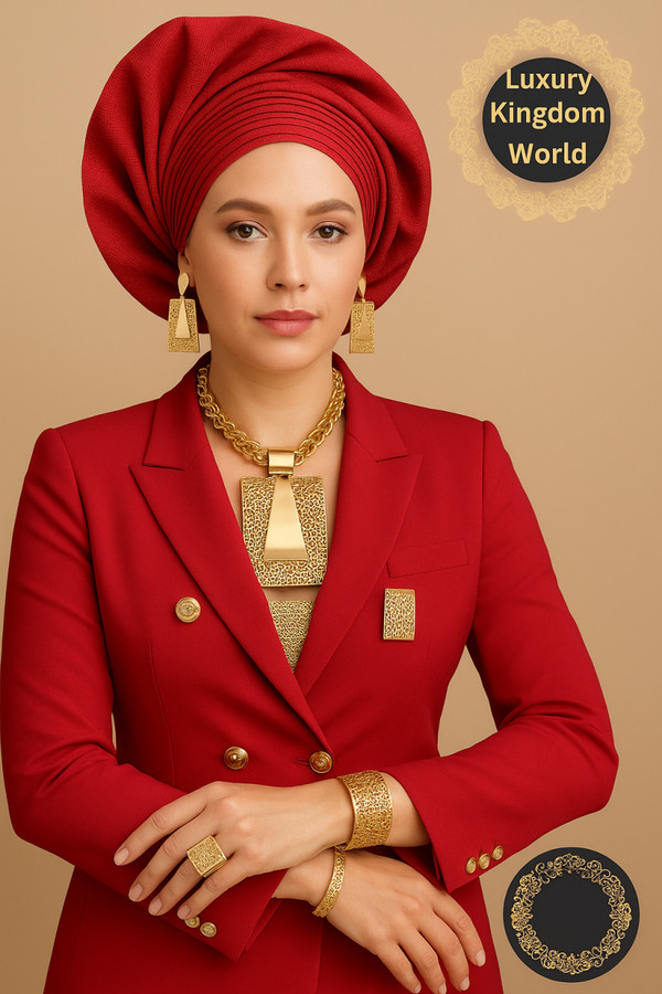 Step into timeless elegance with this luxury gold statement Jewellery set from Maftawa Digital Global, designed for women who love sophistication, confidence, and bold fashion.