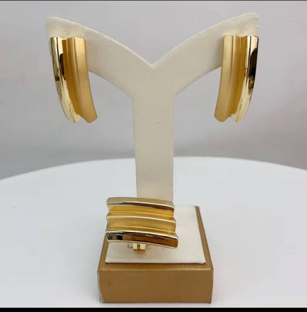 Step into effortless elegance with this 3-piece gold jewellery set — designed for the modern woman who embraces both classic grace and bold flair. Each piece pairs a timeless silhouette with striking geometric texture, making it just as suitable for everyday outfits as it is for special occasions.